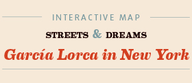 García Lorca and his friend and mentor Fernando de los Ríos took the RMS Olympic--sister ship of the Titanic--from Southampton to New York, arriving on June 25, 1929. Lorca wrote his parents that his trip had been marvelous. "The ocean was completely calm for all six days. They were like six days in a sanatorium and I have gotten a real tan, as black as blackest Africa. Life on board a ship is quite gay, and people confide in each other right away. . . .When the ship docked, I had a great surprise. A group of Spaniards was there waiting for us.Ángel del Río, the professor Federico de Onís, the poet León Felipe, various journalists, the director of La Prensa and-- brace yourselves!-- Gabriel García Maroto, who went crazy hugging and even kissing me . . . " (Letter to his parents, June 28, 1929.)